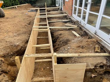 Foundations are one of the first and most crucial phases of any project. We manage the entire process, from the excavation and disposal of waste, to the concrete pour in the footings. We create the foundation for your extension or new build structure, ensuring a solid and reliable base for the project. First we prepare the site and excavate to the required depth, ensuring all neccesary drainage is in place. We then pour the correct class of high-quality concrete for the spec of your soon to follow structure, providing a durable and level foundation. With a focus on precision and efficiency, we always work closely with the local building authorities to ensure all regulations are met.